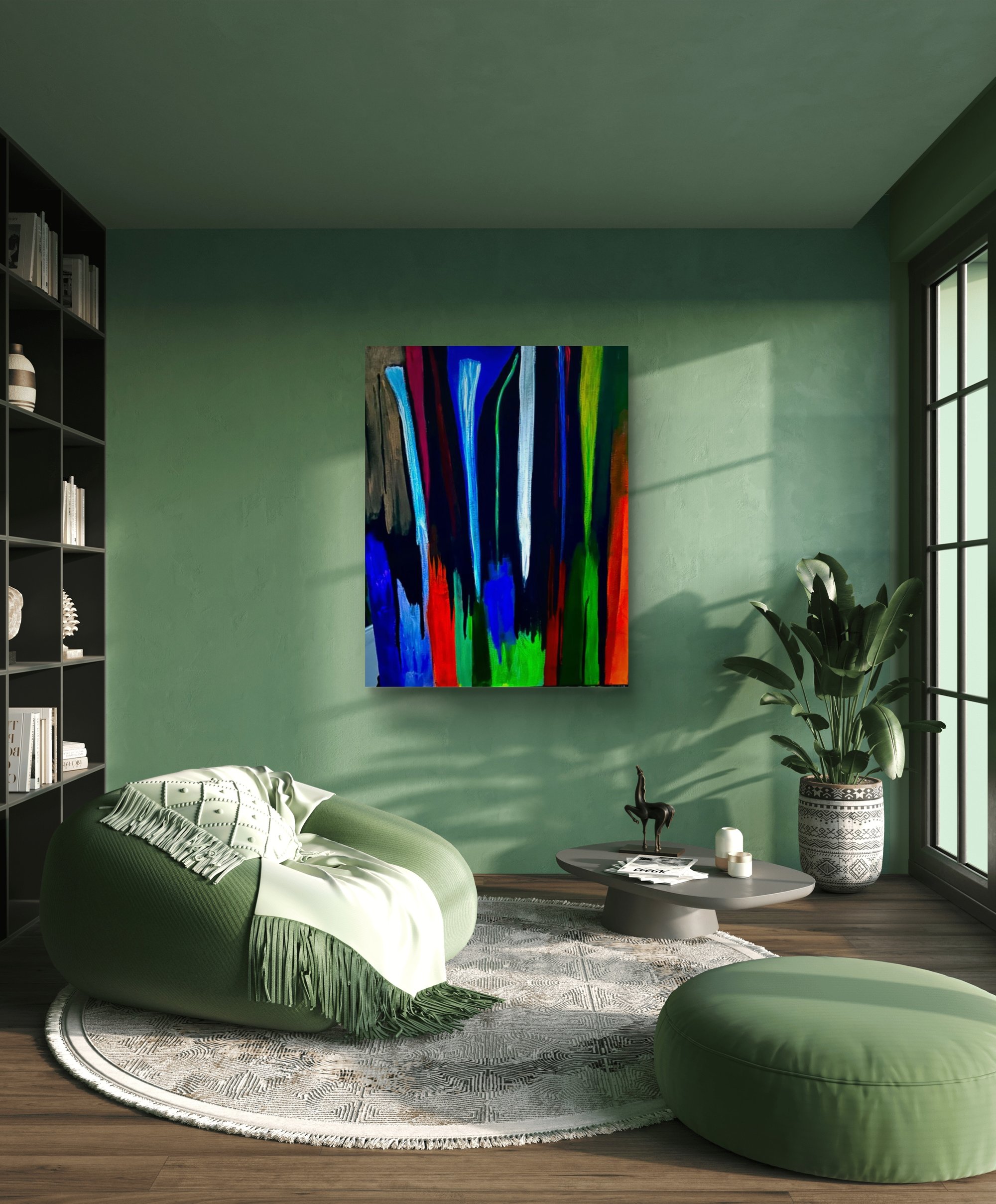 THIS PAINTING TELLS A STORY OF MANY COLORFUL BRIGHT FALLS