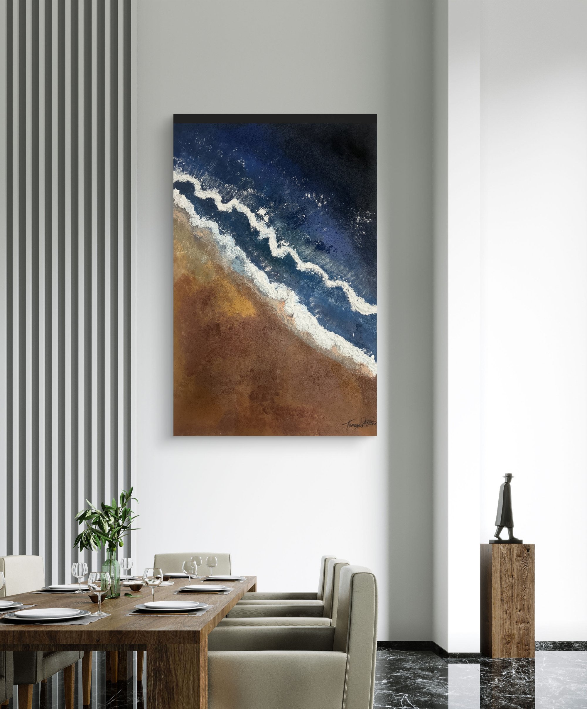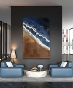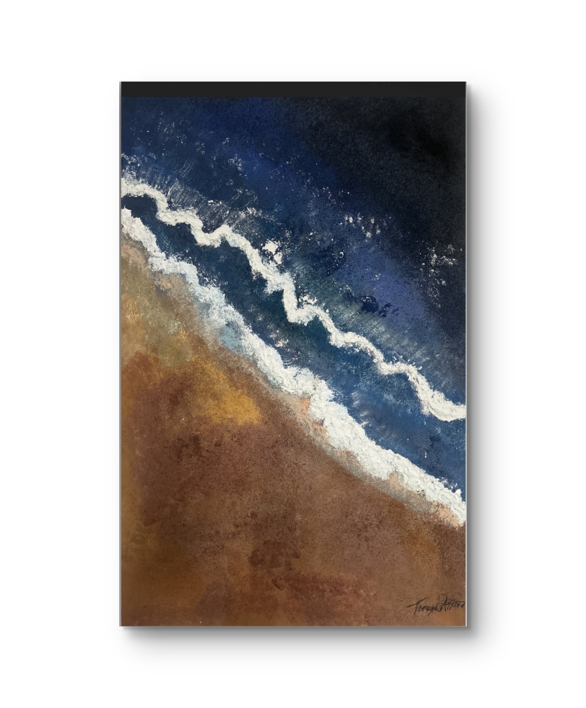 THE WATERS Peace is a 24 x 36 texture acrylic ocean painting. The painting has the mixture of sand and acrylic paint to give the realism of the beach and the ocean.